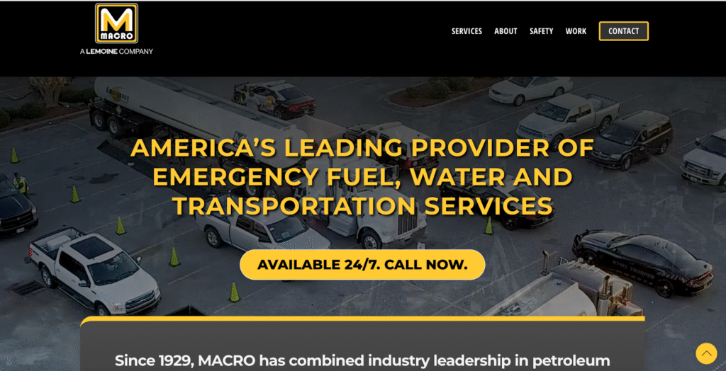 Having managed over 233 disaster events and dispensed more than 75 million gallons of fuel, Macro maintains strict safety standards and offers comprehensive HazMat, HazWoper, confined space and industrial hygiene training. The company has earned recognition from ISNetworld and DISA for compliance and safety excellence.
